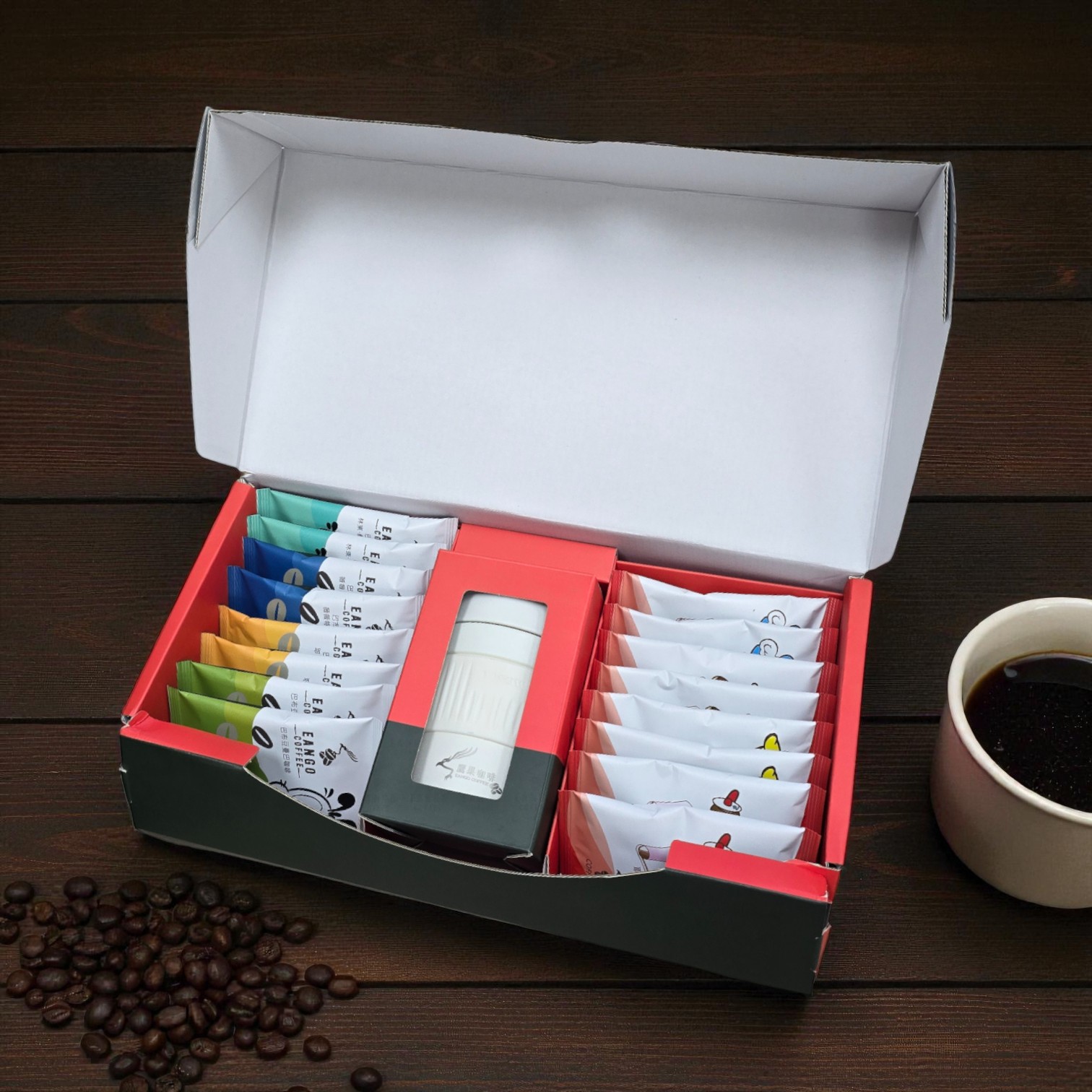 全濾掛禮盒:薇薇特南果、林東曼特寧、耶加雪菲、曼巴各4入、白色陶瓷杯1個